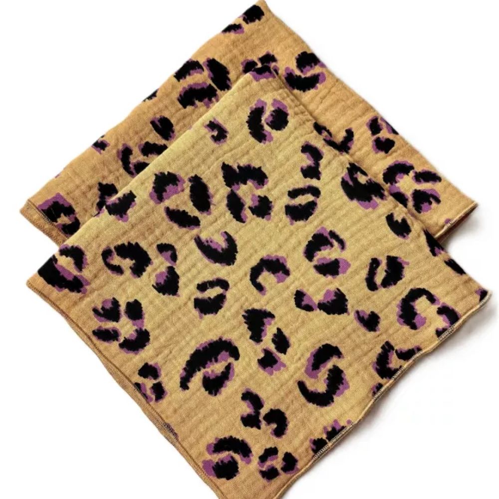 2 Serviettes de Table en Double Gaze de Coton – Léopard Fauve – 40×40 cm