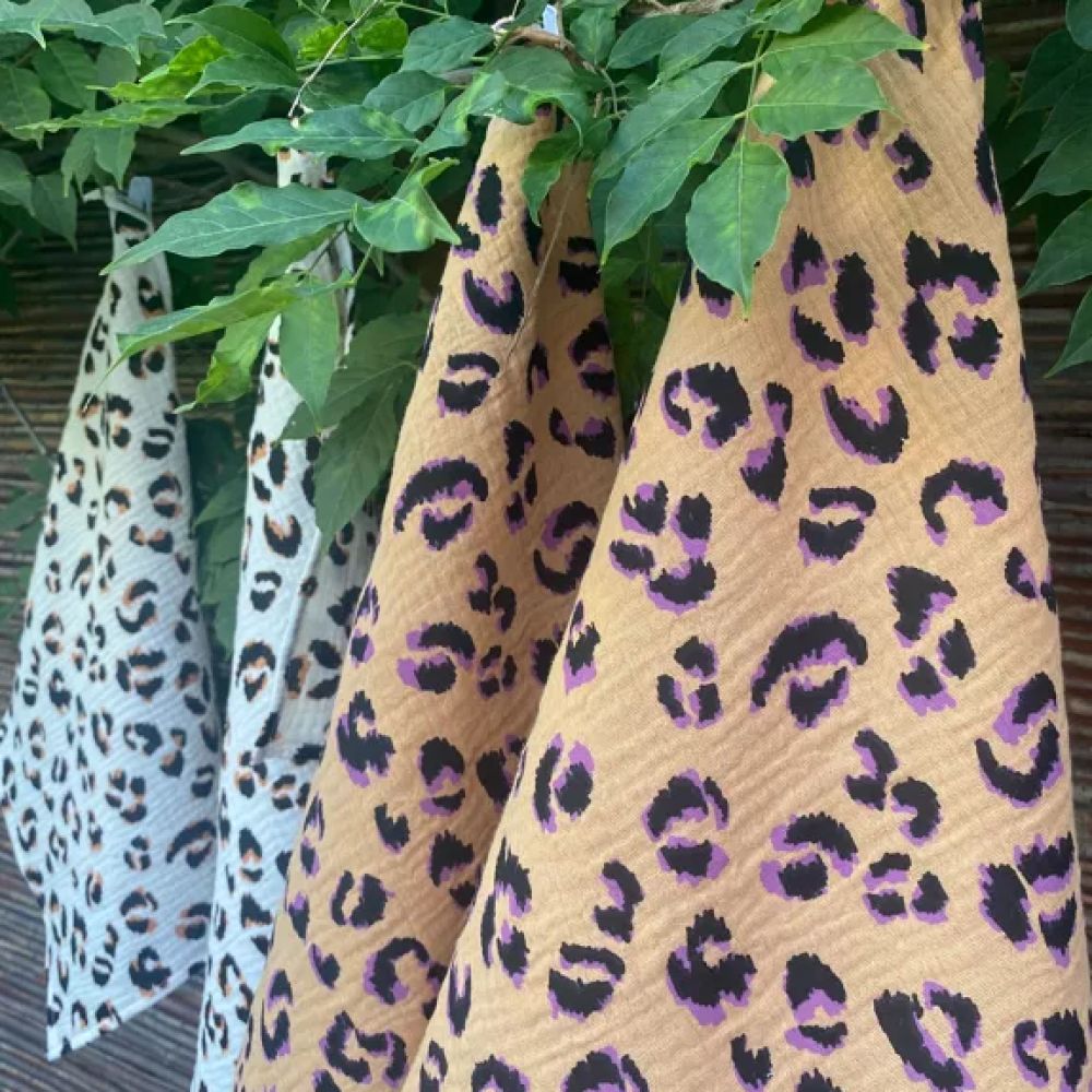2 Torchons – gaze de coton léopard écru – 35x50cm – Fabriqués en France