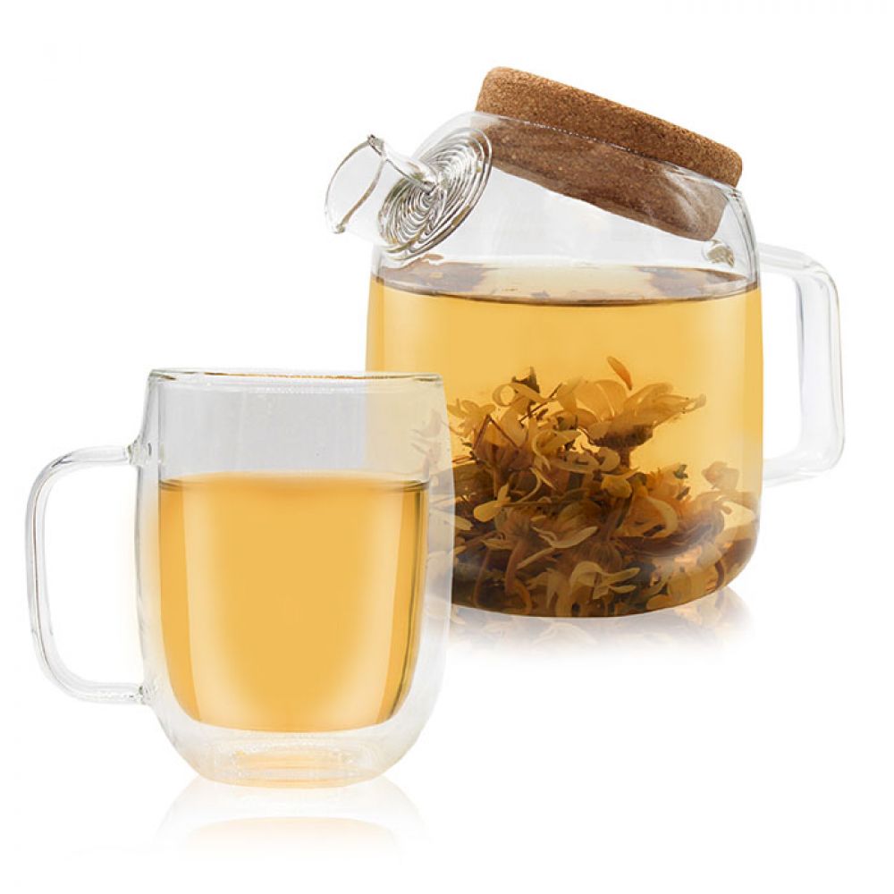 Kit théière et tasse transparentes en verre soufflé x4 Horae