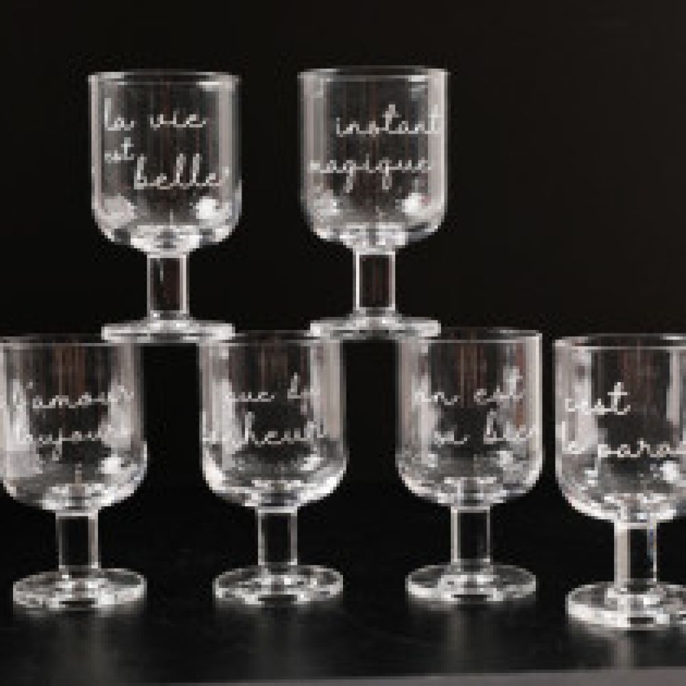 6 Verres à pieds empilables « maison du bonheur » SJ