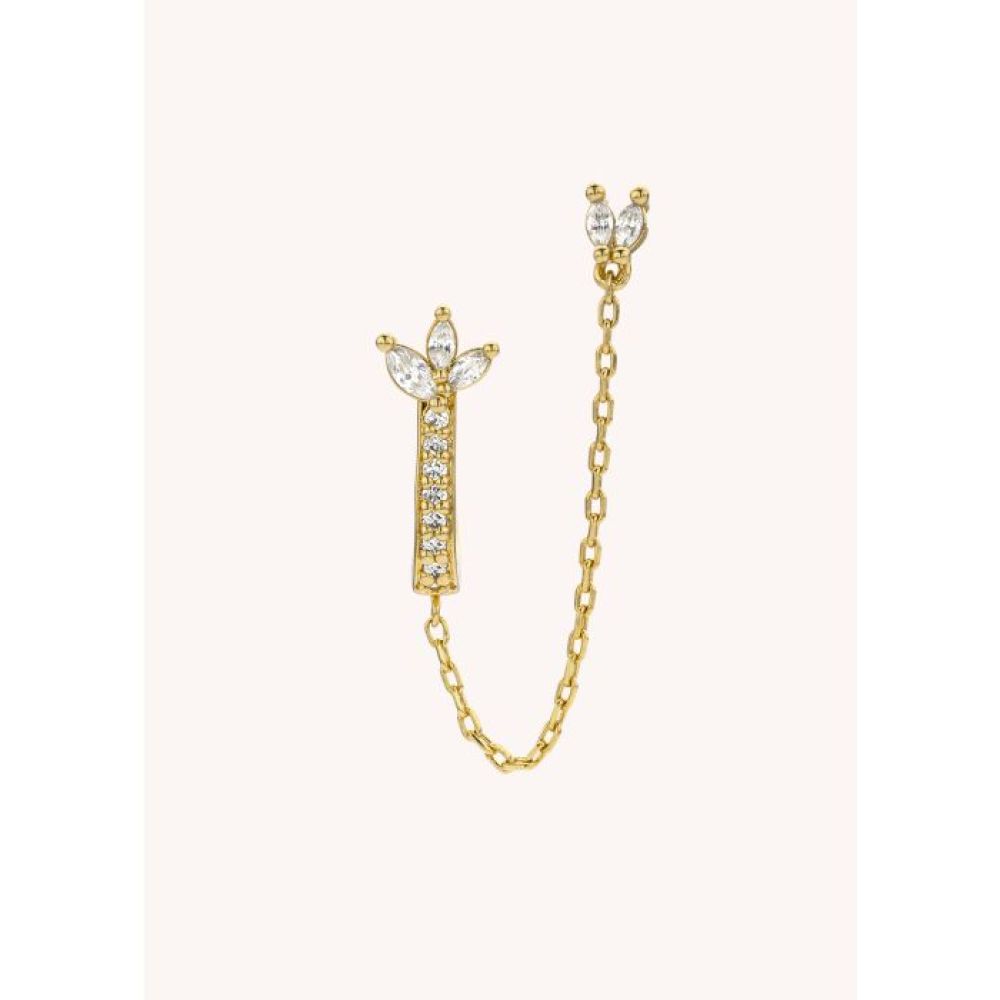 Pensée pour deux trous d’oreilles et à porter en solo, elle joue la carte de l’asymétrie brillante avec sa chaînette délicate et son motif KYOTO bien connu des fans de…