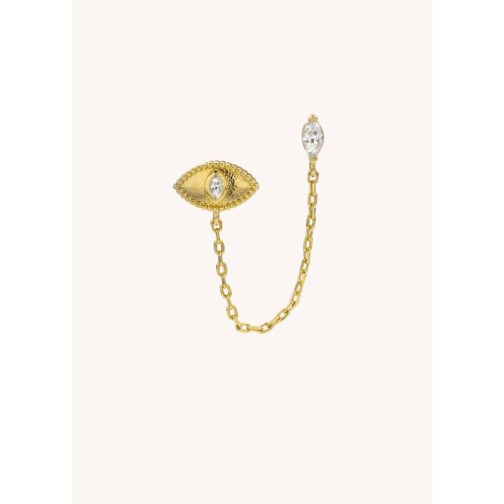 La boucle d’oreille MIDNIGHT de MYA BAY, dorée à l’or fin recyclé 24 carats, célèbre le symbole de l’œil avec force et délicatesse.