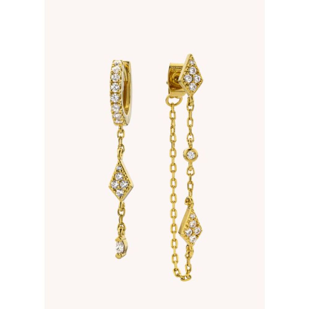 Dépareillées, elles se répondent sans se ressembler totalement. Leurs délicats losanges dessinent un jeu de lignes tout en finesse, animé d’un léger mouvement qui donne au bijou une douceur twistée…