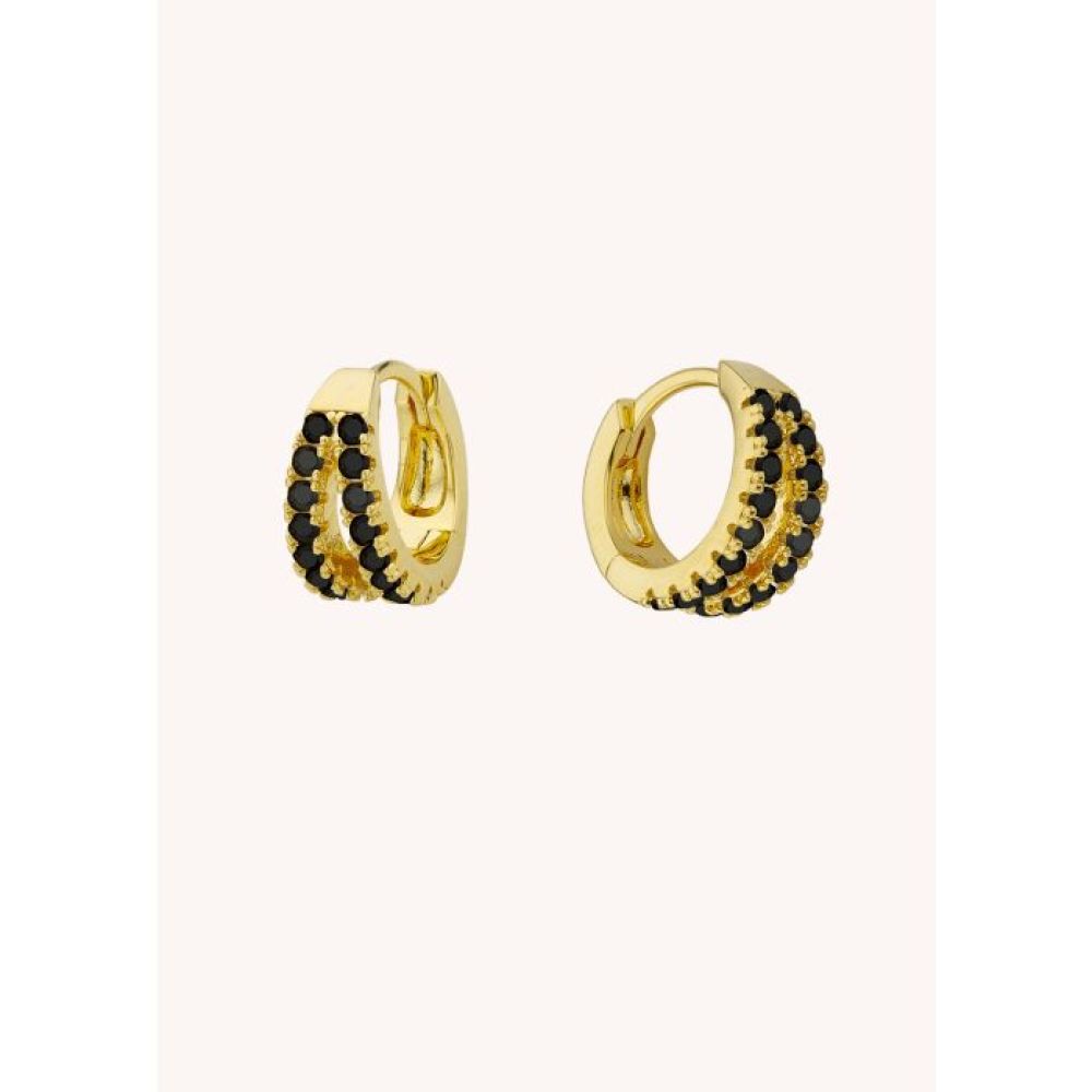 Les boucles d’oreilles BLACK DOUBLE STELLAR de MYA BAY, dorées à l’or fin recyclé 24 carats, sont la version dark et intense de notre best-seller DOUBLE STELLAR.