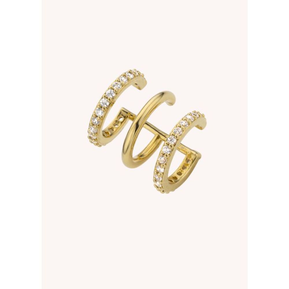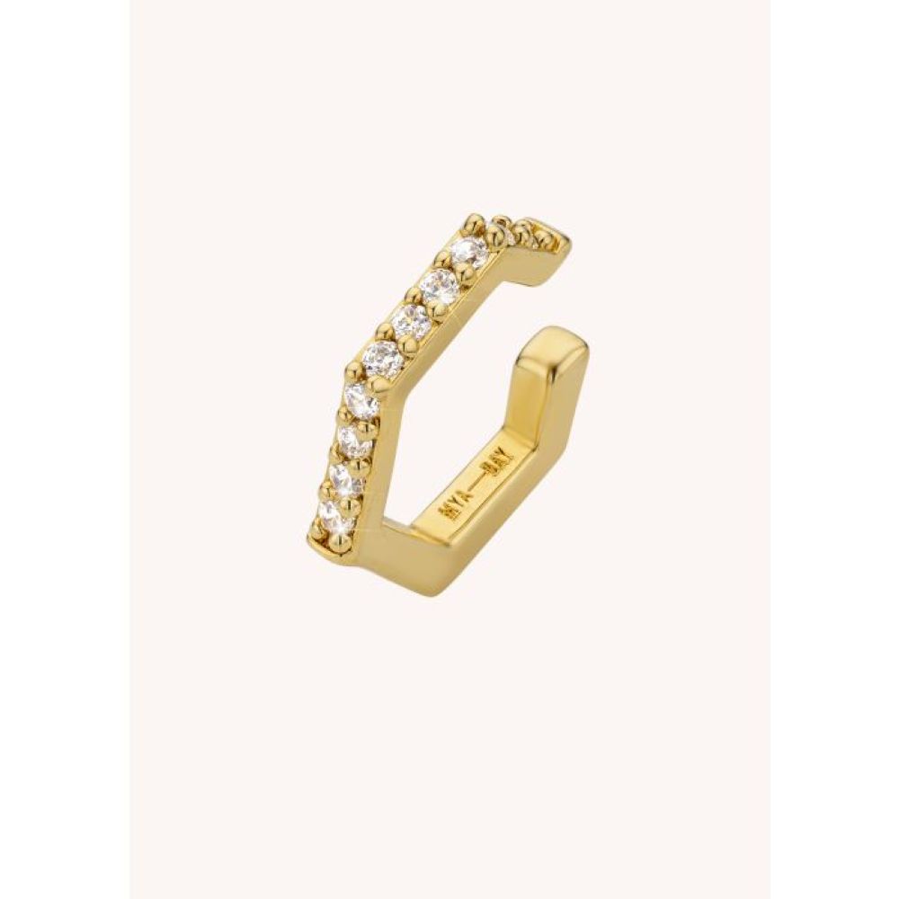 Le faux piercing ROCKY BOLD de MYA BAY, doré à l’or fin recyclé 24 carats, joue avec les codes de la géométrie pour twister vos looks d’une touche edgy mais ultra chic.