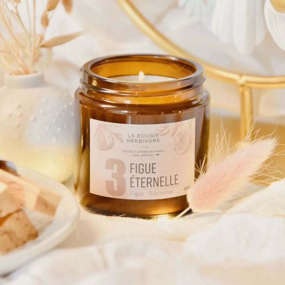 No.3 – Figue Éternelle | Figue & Edelweiss | Bougie Parfumée – Collection Signature La Bougie Herbivore |140g 40h | Made in France