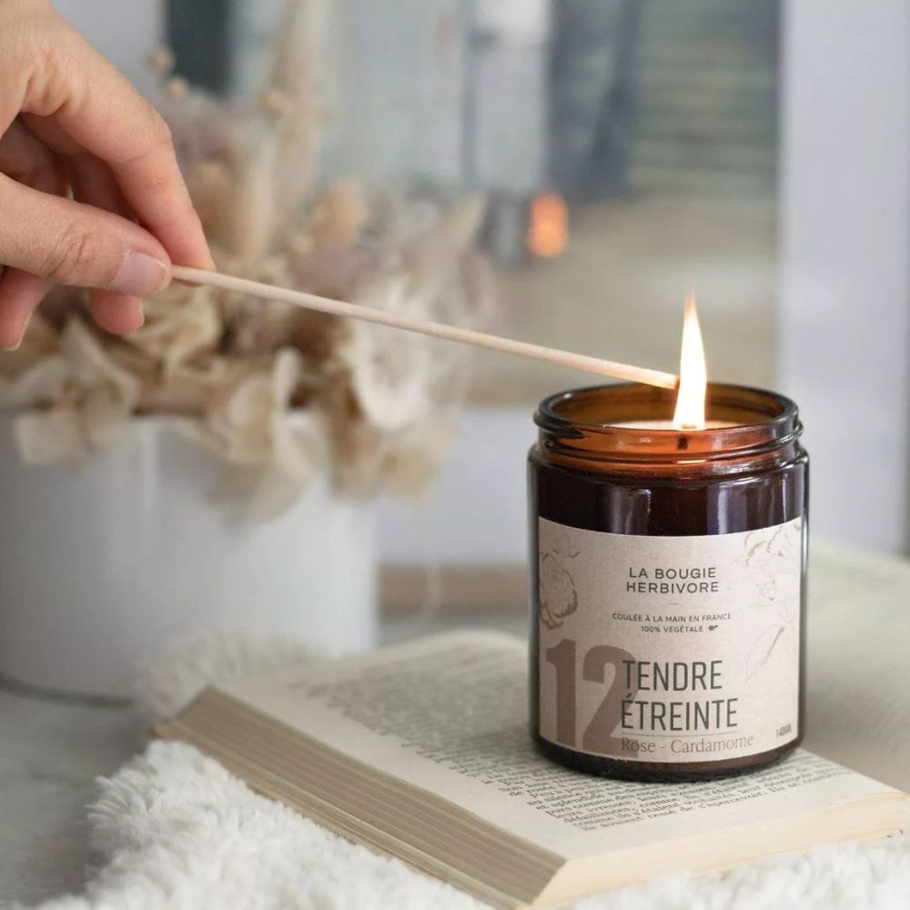 No.12 – Tendre Étreinte | Rose & Cardamome | Bougie Parfumée – Collection Signature La Bougie Herbivore |140g 40h | Made in France