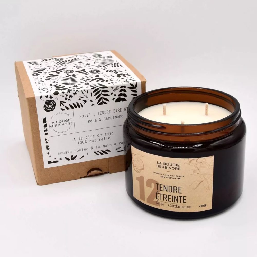 No.12 – Tendre Étreinte | Rose & Cardamome | Bougie Parfumée – Collection Signature La Bougie Herbivore|400g 3 mèches | Made in France