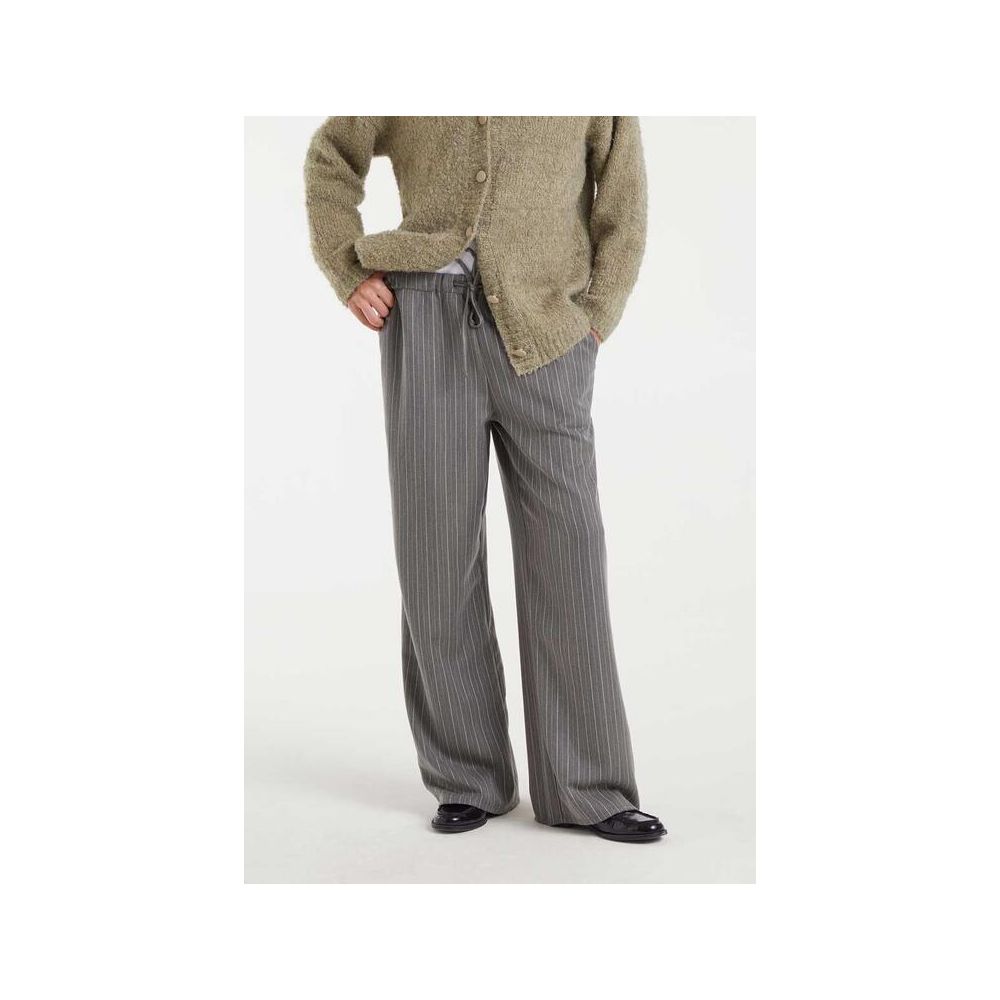 Pantalon à rayures diplomatiques gris. Taille moyenne et élastique à l’arrière. Jambe droite et fermeture par cordon fin. Le mannequin mesure 177 cm et porte la taille S.rnCOMPOSITION : 85 % polyester, 15 % viscose | ENTRETIEN : lavage en machine à l’eau froide, ne pas utiliser d’eau de Javel, ne pas mettre au sèche-linge,…