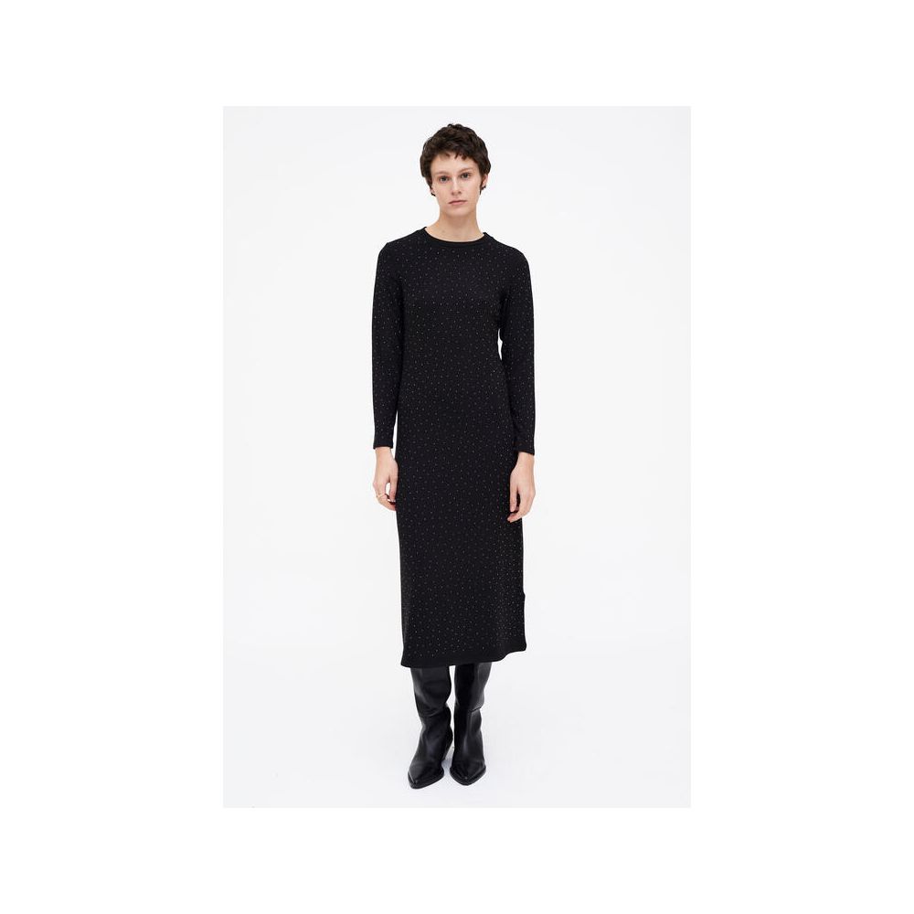 Robe midi noire avec strass argentées. Col rond et manches longues.
