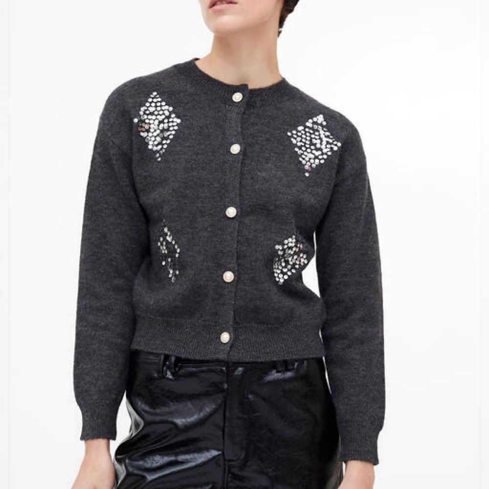 Cardigan en maille grise avec détails en paillettes