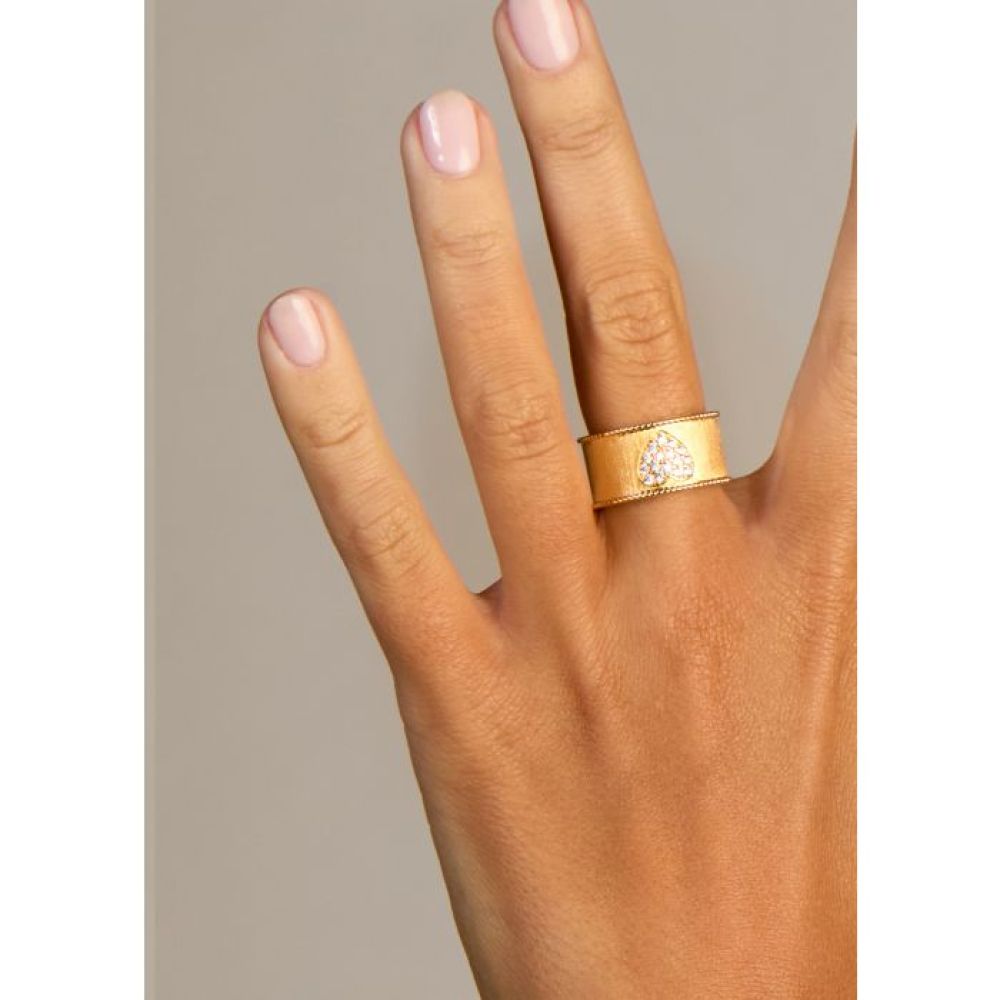 La bague HEART CROWN de MYA BAY, dorée à l’or fin recyclé 24 carats, est une déclaration pleine de douceur et de lumière.rnrnAvec sa finition or brossé et son petit cœur en strass, elle brille juste ce qu’il faut. Poétique sans être mièvre, elle donne du style et de l’émotion au bout des doigts.rnrnDisponible en trois tailles, elle est parfaite à offrir… ou à s’offrir.rnrnCe modèle taille légèrement petit : si tu portes habituellement une taille 52, opte pour une 54 pour un 54, choisis une 56. Concrètement, la taille 52 correspond davantage à un 50.rnrnEt si tu aimes ce style, découvre aussi la SIGNATURE CROWN ou la BELLA CROWN.
