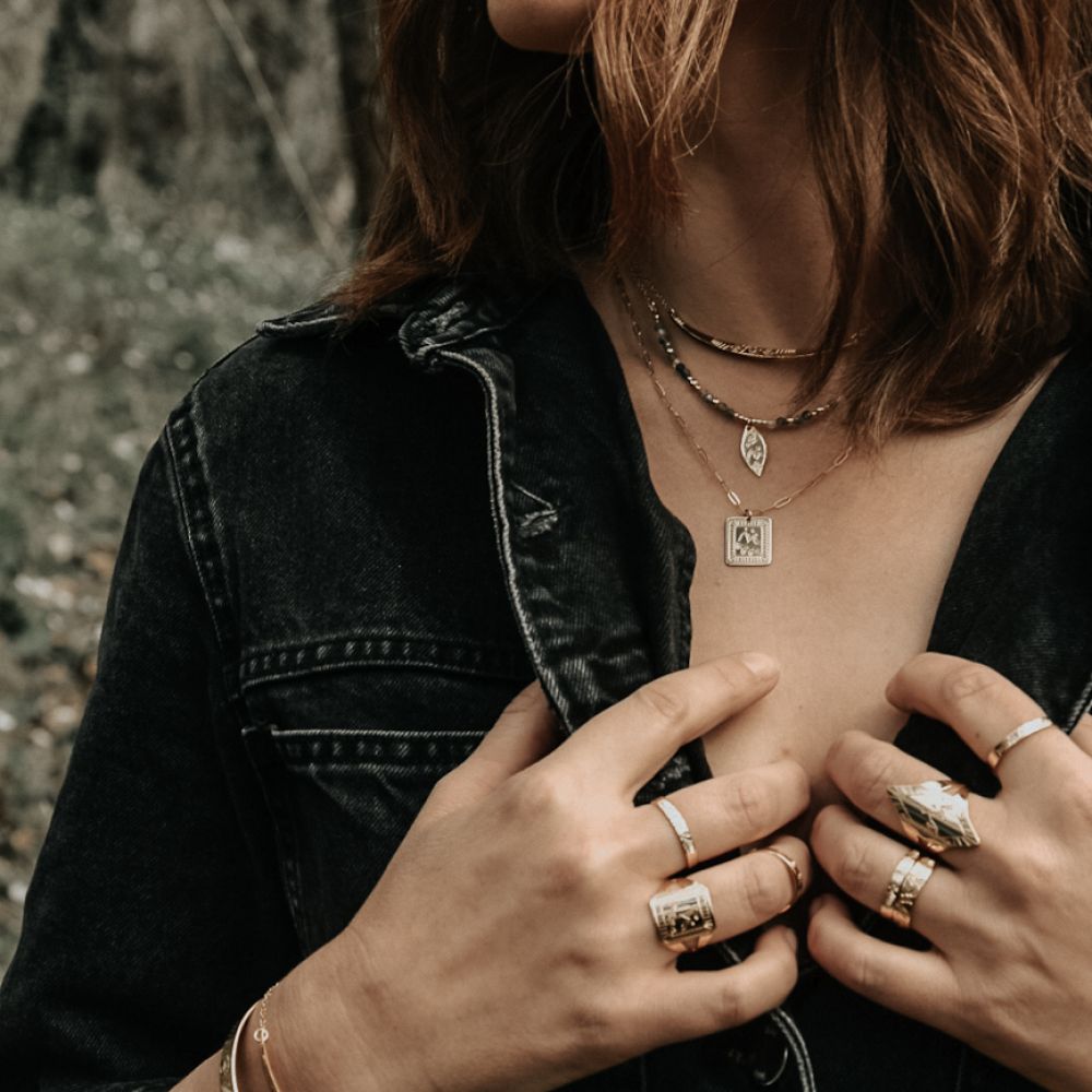 69,00€rnrnBague « Montagnes Aubée » Plaqué Or et Plaqué ArgentrnrnAvec ses gravures inspirées des reliefs alpins et son design carré de 15*15 mm, la bague « Montagnes Aubée » incarne l’esprit sauvage de la montagne.rnrn– Disponible en plaqué or et plaqué argentrn– Ajustable en deux tailles : 50-53 et 54-56rn– Fabrication artisanale en Haute-SavoiernrnConseils d’utilisation : Ajustez la bague une seule fois à votre taille pour éviter toute déformation. Évitez les contacts répétés avec des surfaces dures pour prolonger sa durée de vie.rnrnChaque bague est livrée dans son écrin ENDE, prête à offrir ou à porter au quotidien.