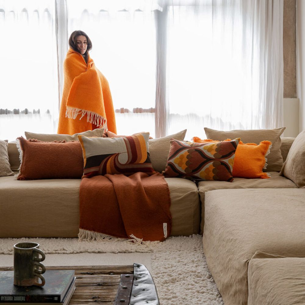 Coussin en coton flammé