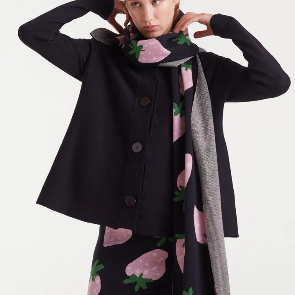 Cardigan noir en maille. Col rond et manches longues. Fermeture à boutons sur le devant. Finitions côtelées. Le mannequin mesure 177 cm et porte une taille S.