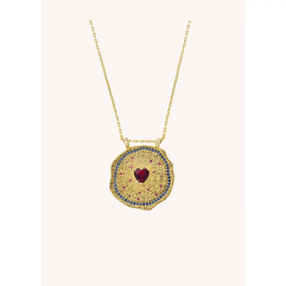 Le collier RUBY HEART MOON séduit avec son éclat scintillant et son cœur couleur rubis éclatant, apportant une touche de rêve et d’émerveillement à votre look. Un bijou légèrement matifié qui promet de mettre des étoiles plein les yeux !