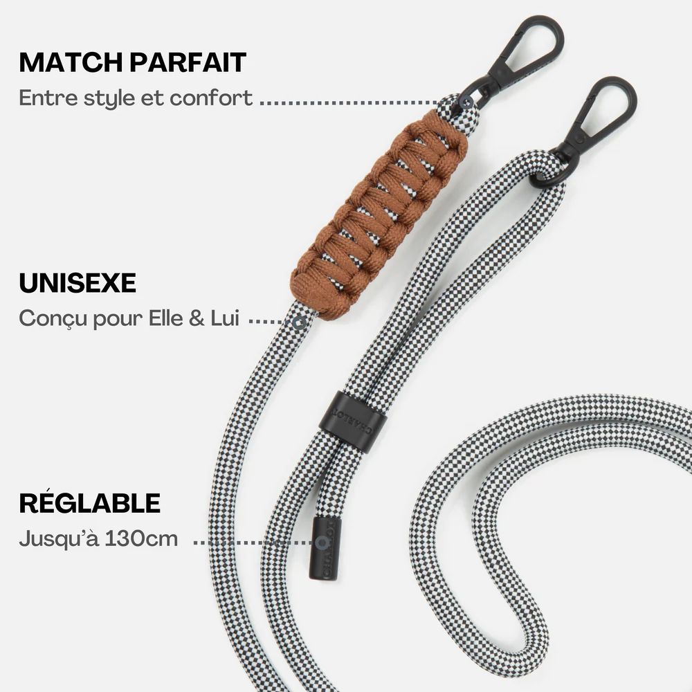 Le Cordon de téléphone ELIE : l’accessoire incontournable pour Elle et Lui.Attachez-le à votre téléphone et portez-le autour de votre cou ou en bandoulière pour une liberté de mouvement ultime, tout en ajoutant une touche de couleur vibrante à votre tenue du jour.rnrnNos cordons ELIE sont interchangeables, vous avez la possibilité de les combiner avec toutes nos coques CHARLOT · Paris.rnrnConçu pour elle et lui, c’est un match parfait entre style et confort. Mesurant 130cm et pesant seulement 90g, ce cordon unisexe devient l’accessoire idéal pour accompagner vos journées