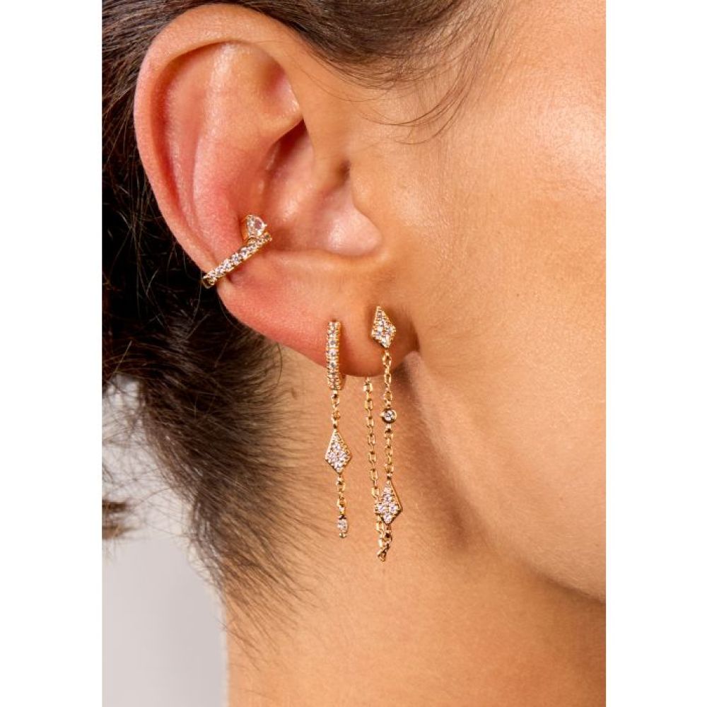 Il apporte une touche sophistiquée à l’oreille avec ses petits détails brillants, tout en finesse. Idéal pour accessoiriser sans engagement, il s’ajuste en un clin d’œil pour illuminer le contour de l’oreille.
