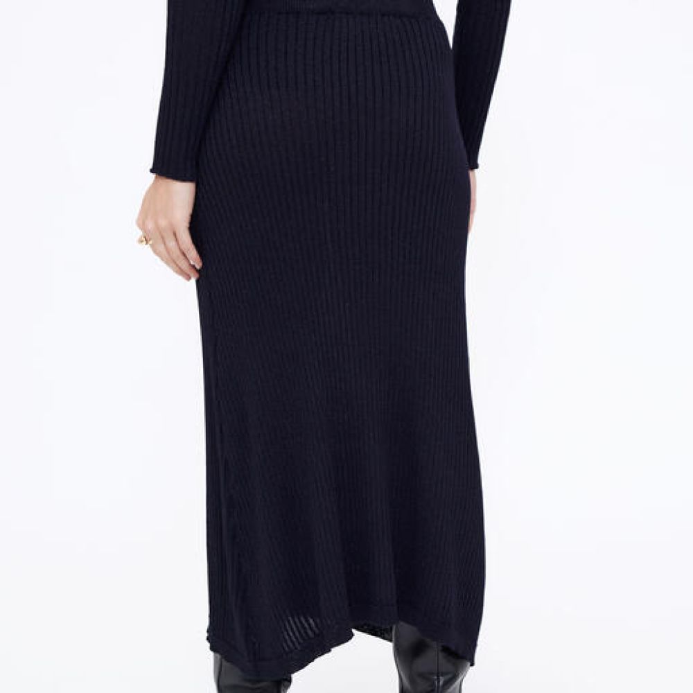 Robe midi fluide noire. Décolleté en V et sans manches. Modèle à coupe large.