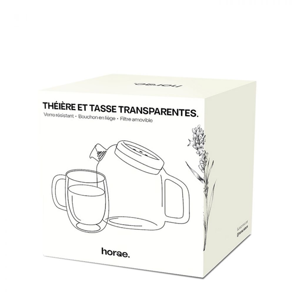Kit théière et tasse transparentes en verre soufflé x4 Horae