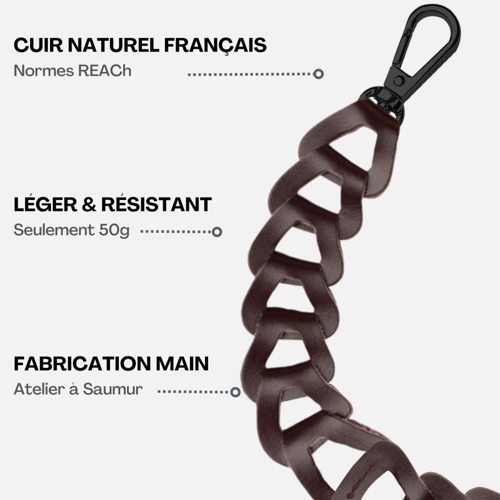 Très agréable à porter au quotidien, notre bandoulière est légère (ne pèse que 50 grammes en version longue) mais très résistante..