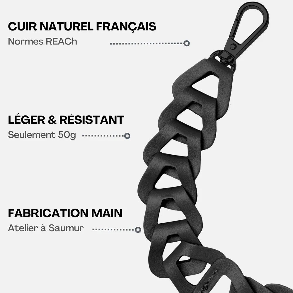 Permets de porter son téléphone sur soi en bandoulière pour toujours garder les mains libres. Compatible avec votre coque CHARLOT et notre adaptateur universel. Peut-être utilisée en anse de sac à main.