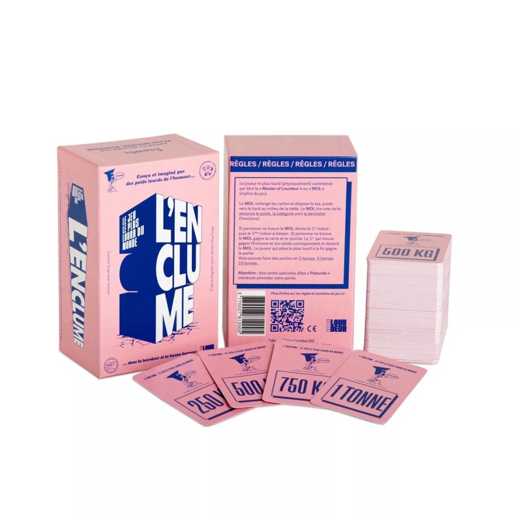 L’Enclume, c’est le jeu le plus lourd du monde, parfait pour les amateurs d’humour absurde et de devinettes décalées. Inspiré par les jeux cultes, il est à la lourdeur ce que Pictionary est au dessin.