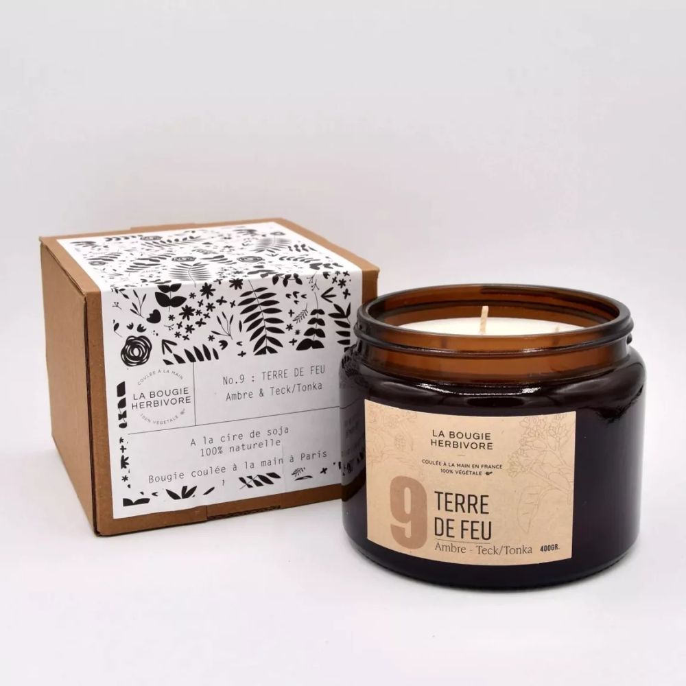 No.9 – Terre de Feu | Ambre, Teck & Tonka | Bougie Parfumée – Collection Signature La Bougie Herbivore|400g 3 mèches | Made in France