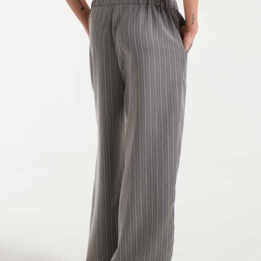 Pantalon à rayures diplomatiques gris. Taille moyenne et élastique à l’arrière. Jambe droite et fermeture par cordon fin. Le mannequin mesure 177 cm et porte la taille S.rnCOMPOSITION : 85 % polyester, 15 % viscose | ENTRETIEN : lavage en machine à l’eau froide, ne pas utiliser d’eau de Javel, ne pas mettre au sèche-linge, sécher à l’ombre, repasser à une température maximale de 110 °C, laver avec des couleurs similaires