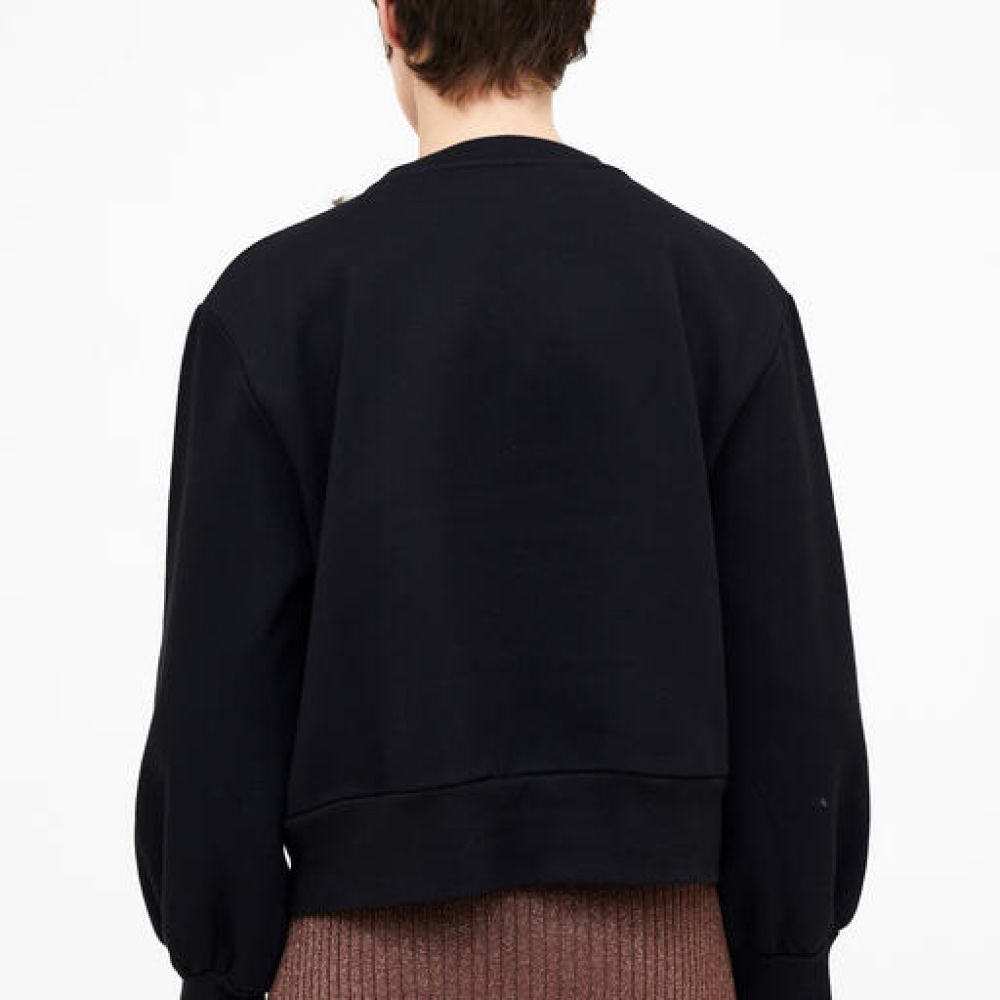 Sweat-shirt noir en molleton polaire. Col rond avec détails bijoux et manches longues avec bords-côtes.